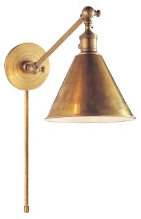 Brass Library Sconce : This single arm can be moved to direct the light for optimal reading conditions.